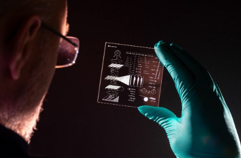 Using ultra-precise femtosecond lasers, the scientists are able to etch information in the form of « voxels » (three-dimensional pixels) onto glass plates the size of a coaster.