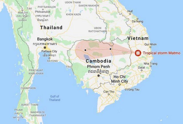The storm passed through Cambodia, weakening, before bringing rains to northeast, central, eastern and southern Thailand.